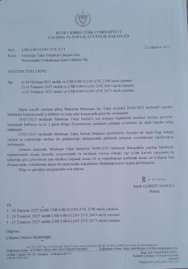 Bakan Tarih Serhat’ın önce 12 Ağustos tarihinde çalışma izinleri portalında yetkileri iptal edildi, şu anda portala giremiyor…