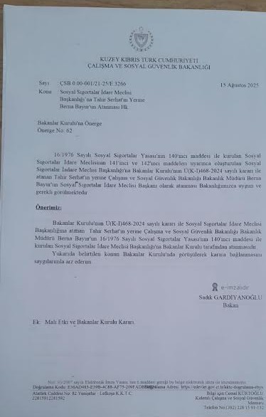 Sonra da 15 Ağustos tarihinde Sosyal Sigortalar İdare Meclisi Başkanlık görevi iptal edilerek yerine Berna Bayur getirildi!