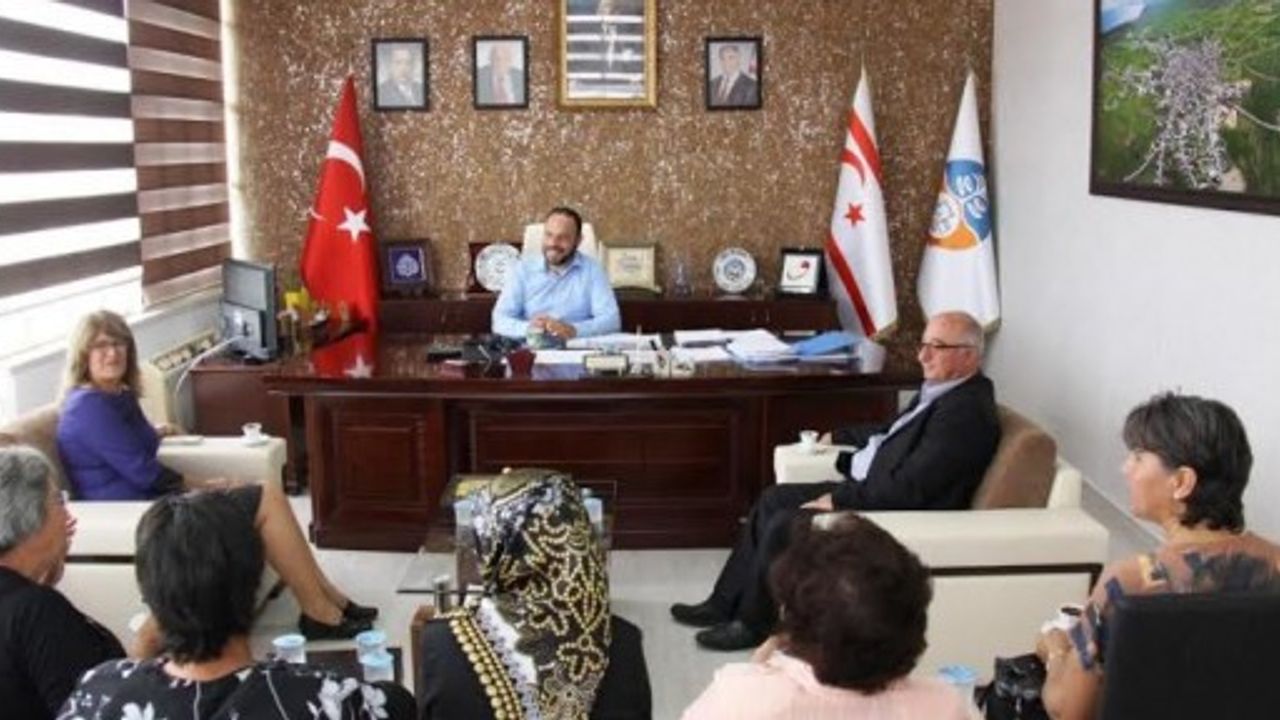 Koza işi, bargello ve deri nakışı ile lefkara işi gibi pek çok el emeği göz nuru esere imza atan Sema Çakmak öncülüğündeki Boğaziçi Köy Kadın Kursu, İskele Belediye Başkanı Hasan Sadıkoğlu’nu ziyaret etti. Ziyarette kadınlar adına konuşan Çakmak, İhtiyaç listelerinin en başında yer alan dikiş makinesini kendilerine armağan eden Sadıkoğlu’na, köy kadın kurslarına yapmış olduğu katkılardan ötürü teşekkür etti.