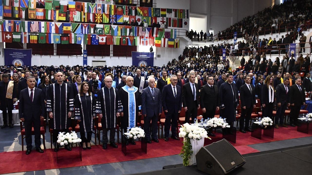 Doğu Akdeniz Üniversitesi (DAÜ) 2025–2026 Akademik Yılı Güz Dönemi Lisansüstü, Lisans ve Ön Lisans Mezuniyet Töreni, dün saat 14.00’te, Lala Mustafa Paşa Spor Sarayı’nda gerçekleştirildi.