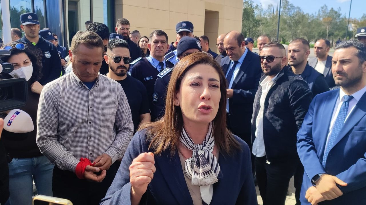 İncirli, Meclis Genel Kurulu devam ederken, dışarıda eylem yapan sendikaların yanına geldi. İncirli’ye CTP Genel Sekreteri Mehmet Kale Kişi ve bazı milletvekilleri de eşlik etti.
