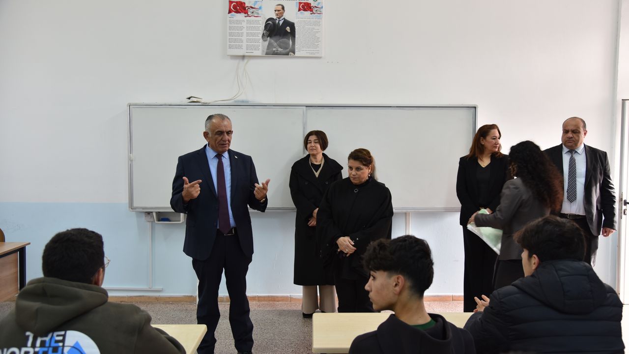 Milli Eğitim Bakanı Nazım Çavuşoğlu da Gazimağusa’daki Dr. Fazıl Küçük Endüstri Meslek Lisesi’ndeki karne dağıtım törenine katılarak öğrencilerin heyecanını paylaştı.