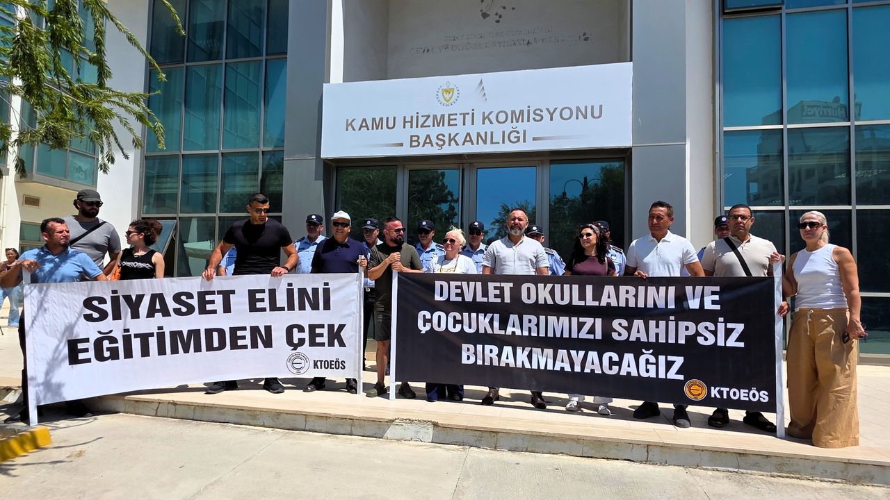 Kıbrıs Türk Orta Eğitim Öğretmenler Sendikası (KTOEÖS), seçim yasakları gerekçe gösterilerek öğretmen atamalarının yapılmamasını protesto etmek amacıyla bugün Kamu Hizmet Komisyonu (KHK) önünde eylem yaptı.