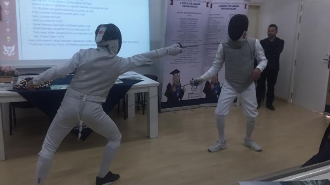 Girne Amerikan Üniversitesi KKTC liselerinde gerçekleştirdiği tanıtımlarına devam ediyor. Yükseköğretimde 32 yıllık eğitim geçmişini geride bırakan GAÜ, 7 kıtaya yayılan kampüslerini ve öğrenci odaklı eğitim sistemini, öğrencilere aktarmaya devam ediyor. Güzelyurt Kurtuluş Lisesinde gerçekleştirilen tanıtım çerçevesinde GAÜ Medya Koordinatörü Simge ÖZEKLER ve GAÜ Spor Koordinatör Yardımcısı ve Eskrim Federasyonu Genel Sekreteri Ömer Aydın GAÜ adına tanıtımı gerçekleştirdi. Girne Amerikan Üniversitesini karşılayan Kurtuluş Lisesi Müdürü Veli Büyükağa, GAÜ’nün desteğini her zaman hissettiklerini ve öğrencilerin eğitim anlamında bilgi sahibi olmaları ve farklı seçenekleri bilmeleri açısından bu tanıtımlara büyük önem verdiğini kaydetti. Girne Amerikan Üniversitesi’nin burs seçenekleri ve yurt dışı imkanlarını da ilgi ve takdir ile takip ettiğini kaydeden Büyükağa, Kurtuluş Lisesinden de bir çok eski öğrencisinin şu anda GAÜ’de olduğunu kaydetti. Büyükağa sunum öncesinde GAÜ yetkililerine katılımlarından dolayı teşekkür sertifikası takdim etti. Girne Amerikan Üniversitesi Fakülte ve Bölümleri anlatılırken öğrencilerin en merak ettiği bölümler arasında yer alan Spor Yüksekokulu ile ilgili detaylı bilgiyi Ömer Aydın aktarırken, Eskrim takımındaki iki öğrenci de Kurtuluş Lisesi öğrencilerine Eskrim gösterisi düzenledi. Öğrencilerin yoğun ilgi ve meraklı bakışları eşliğinde eskrim gösterisini gerçekleştiren öğrenciler, Kurtuluş Lisesi Müdürü Veli Büyükağa’nın da katkıları ile önümüzdeki yıl ders başlangıcında Eskrim Sporunun Kurtuluş Lisesinde açılmasını talep ettiler.
