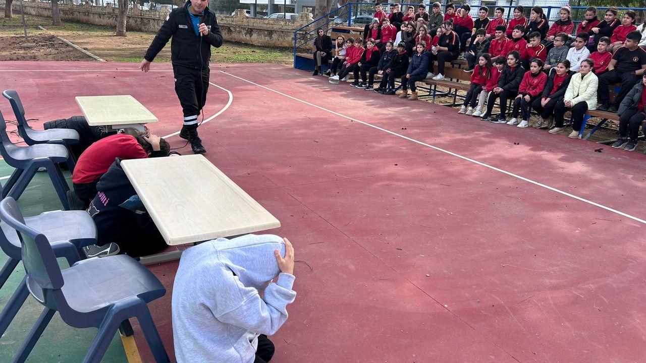 Bu kapsamda, Gazimağusa Bölge Müdürlüğü tarafından bugün Alasya İlkokulu’nda 98 öğrenci ve 9 öğretmene, Gazimağusa Canbulat İlkokulu’nda ise 104 öğrenci ve 11 öğretmene “Deprem ve Tahliye Eğitimi” verildi. Eğitimlerin uygulamalı tahliye çalışmalarıyla desteklendiği, okul yönetimleri ile öğretmenlerin de sürece aktif katılım sağladığı belirtildi.